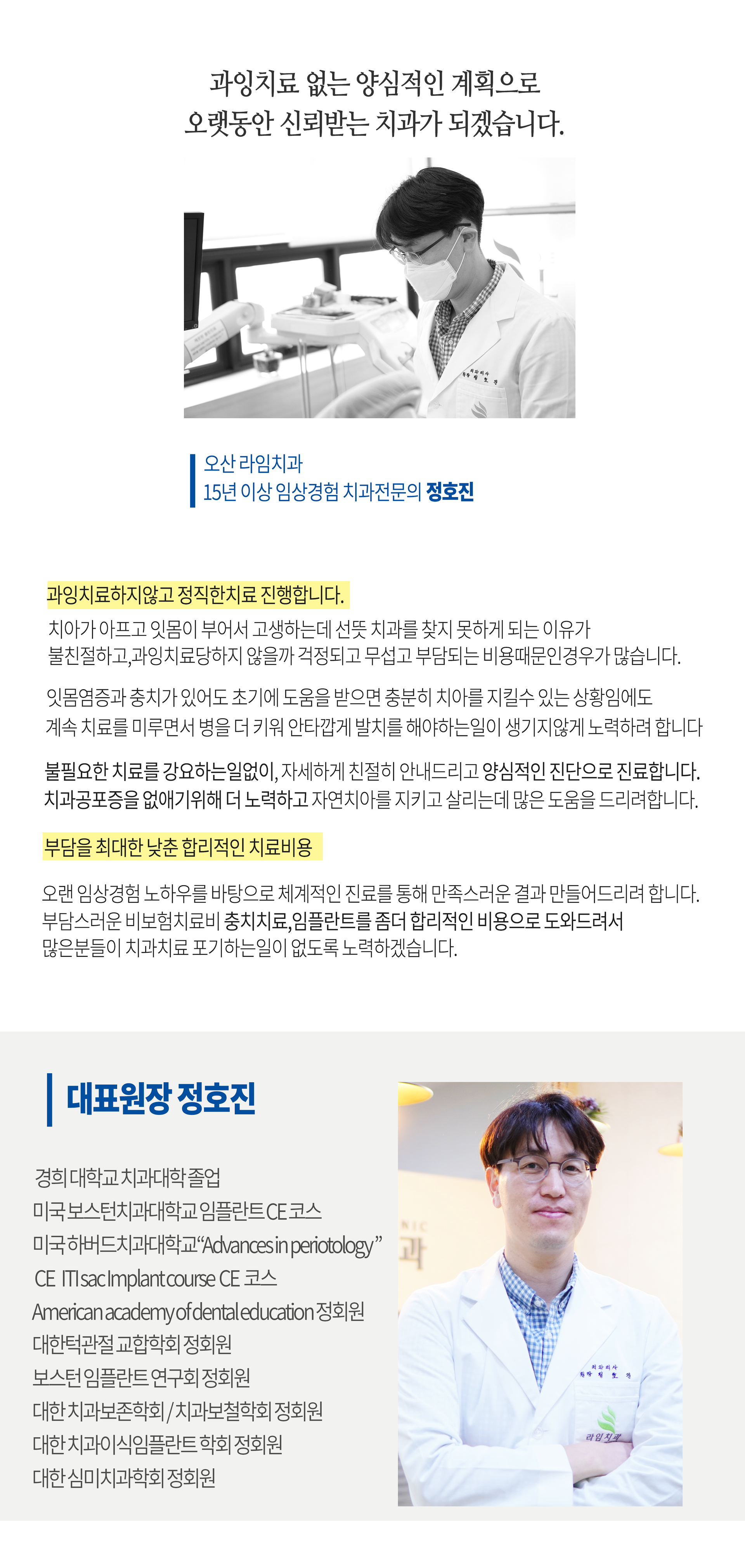 오산 라임치과는 경희대치과대학 출신 정호진 원장이 진료합니다.